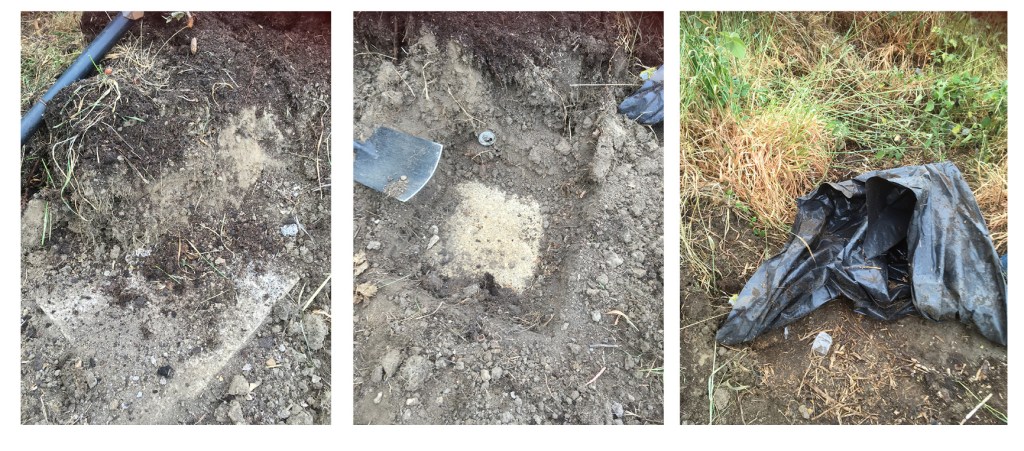Having gone past the beer can layer (a well known archaeological feature) I thought I had made it to ground level. I breathed a sigh of relief and then my spade hit something solid. A paving stone. Paving stones had been a feature of the weed suppression methods of my predecessor. They had been used to hold down the top blue tarpaulin layer and the council contractor had already removed a sizeable pile. I levered up the stone only to find another under it, below that were another two and below that …. black plastic! Surely this was the final layer! It was and it seemed that there was a point beyond which none of the weed suppressing methods were used. However I have yet to get started on that part – the remaining 20 sqm of the allotment so who knows.